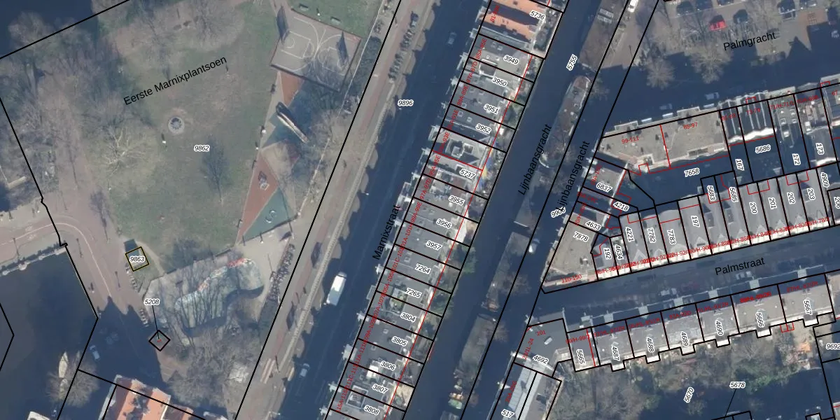 Het perceel waarop Marnixstraat 99-D staat heeft een oppervlakte van 100 m². Dit is een middelgroot perceel. De perceeloppervlakte wordt geregistreerd door het Kadaster. Gedetailleerde informatie over de maten van dit perceel kunt u vinden in het rapport Kadastrale kaart met maatvoering van Marnixstraat 99-D.