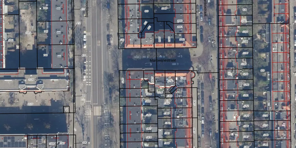 Het perceel waarop Marowijnestraat 13-3 staat heeft een oppervlakte van 86 m². Dit is een klein perceel. De perceeloppervlakte wordt geregistreerd door het Kadaster. Gedetailleerde informatie over de maten van dit perceel kunt u vinden in het rapport Kadastrale kaart met maatvoering van Marowijnestraat 13-3.