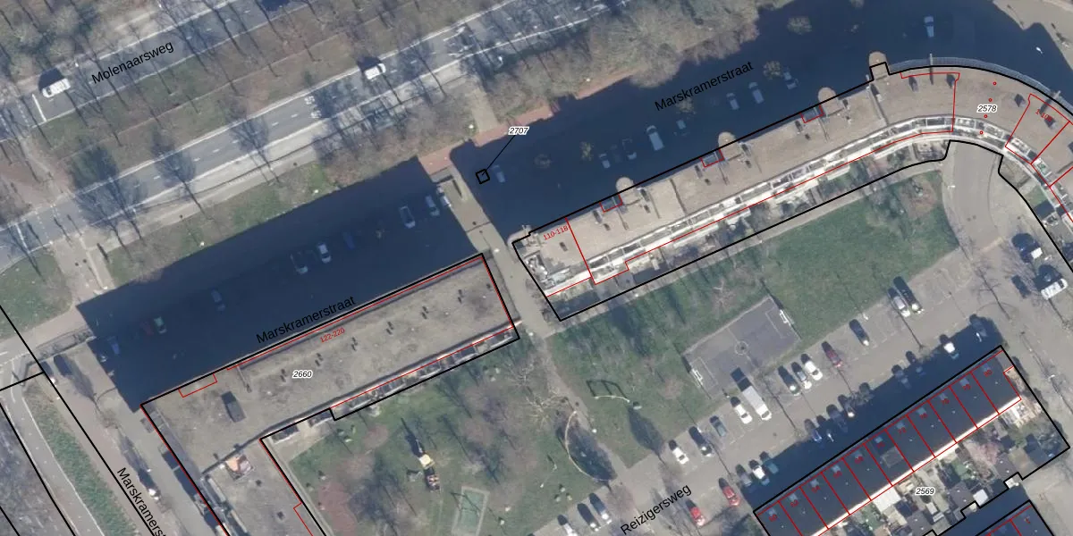 Marskramerstraat 118 is gelegen op kadastraal perceel ASD34AO2578. Deze kadastrale aanduiding is uniek en wordt gebruikt door het Kadaster om eigendomsrechten en andere zakelijke rechten vast te leggen. Het perceel maakt onderdeel uit van de kadastrale gemeente Amsterdam.