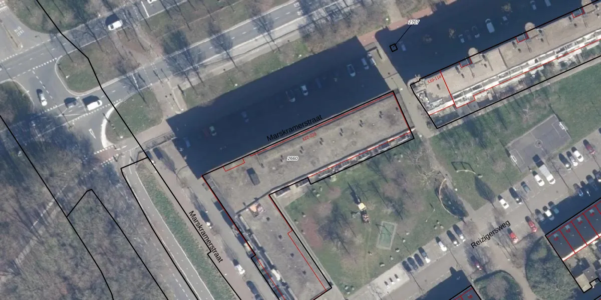 Het perceel waarop Marskramerstraat 130 staat heeft een oppervlakte van 1728 m². Dit is een zeer groot perceel. De perceeloppervlakte wordt geregistreerd door het Kadaster. Gedetailleerde informatie over de maten van dit perceel kunt u vinden in het rapport Kadastrale kaart met maatvoering van Marskramerstraat 130.