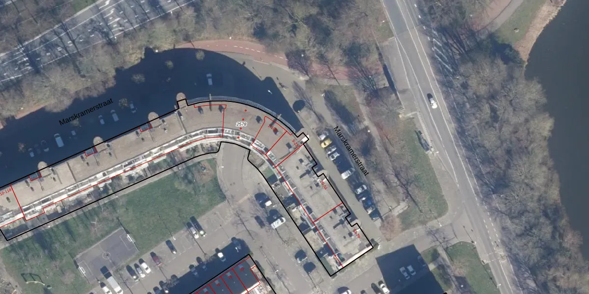 Het perceel waarop Marskramerstraat 15 staat heeft een oppervlakte van 2560 m². Dit is een zeer groot perceel. De perceeloppervlakte wordt geregistreerd door het Kadaster. Gedetailleerde informatie over de maten van dit perceel kunt u vinden in het rapport Kadastrale kaart met maatvoering van Marskramerstraat 15.
