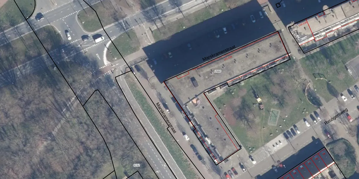 Het perceel waarop Marskramerstraat 154 staat heeft een oppervlakte van 1728 m². Dit is een zeer groot perceel. De perceeloppervlakte wordt geregistreerd door het Kadaster. Gedetailleerde informatie over de maten van dit perceel kunt u vinden in het rapport Kadastrale kaart met maatvoering van Marskramerstraat 154.