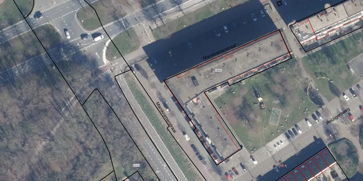 Het perceel waarop Marskramerstraat 162 staat heeft een oppervlakte van 1728 m². Dit is een zeer groot perceel. De perceeloppervlakte wordt geregistreerd door het Kadaster. Gedetailleerde informatie over de maten van dit perceel kunt u vinden in het rapport Kadastrale kaart met maatvoering van Marskramerstraat 162.