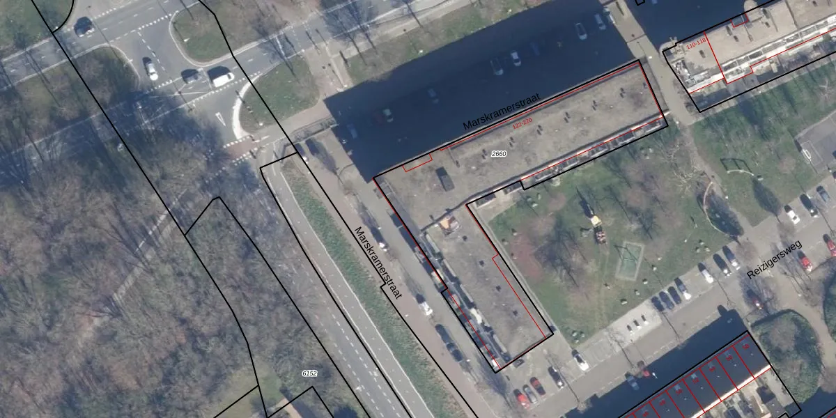 Het perceel waarop Marskramerstraat 172 staat heeft een oppervlakte van 1728 m². Dit is een zeer groot perceel. De perceeloppervlakte wordt geregistreerd door het Kadaster. Gedetailleerde informatie over de maten van dit perceel kunt u vinden in het rapport Kadastrale kaart met maatvoering van Marskramerstraat 172.