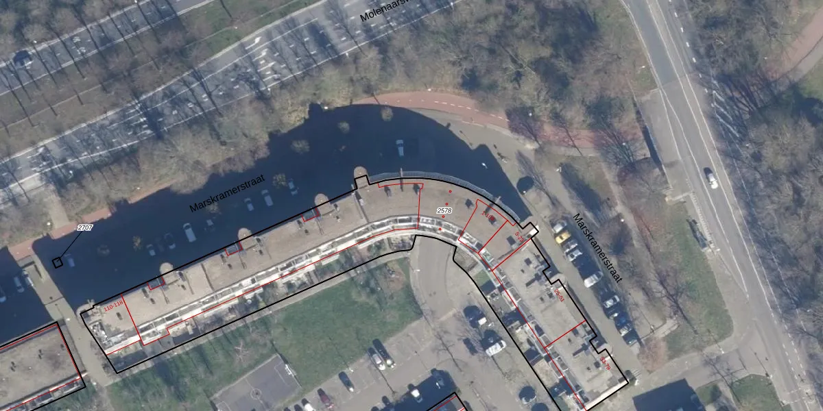 Het perceel waarop Marskramerstraat 2 staat heeft een oppervlakte van 2560 m². Dit is een zeer groot perceel. De perceeloppervlakte wordt geregistreerd door het Kadaster. Gedetailleerde informatie over de maten van dit perceel kunt u vinden in het rapport Kadastrale kaart met maatvoering van Marskramerstraat 2.