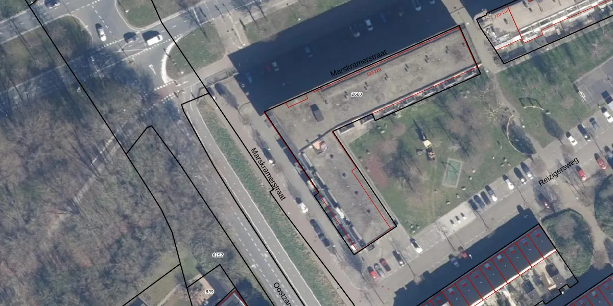 Marskramerstraat 218 is gelegen op kadastraal perceel ASD34AO2660. Deze kadastrale aanduiding is uniek en wordt gebruikt door het Kadaster om eigendomsrechten en andere zakelijke rechten vast te leggen. Het perceel maakt onderdeel uit van de kadastrale gemeente Amsterdam.
