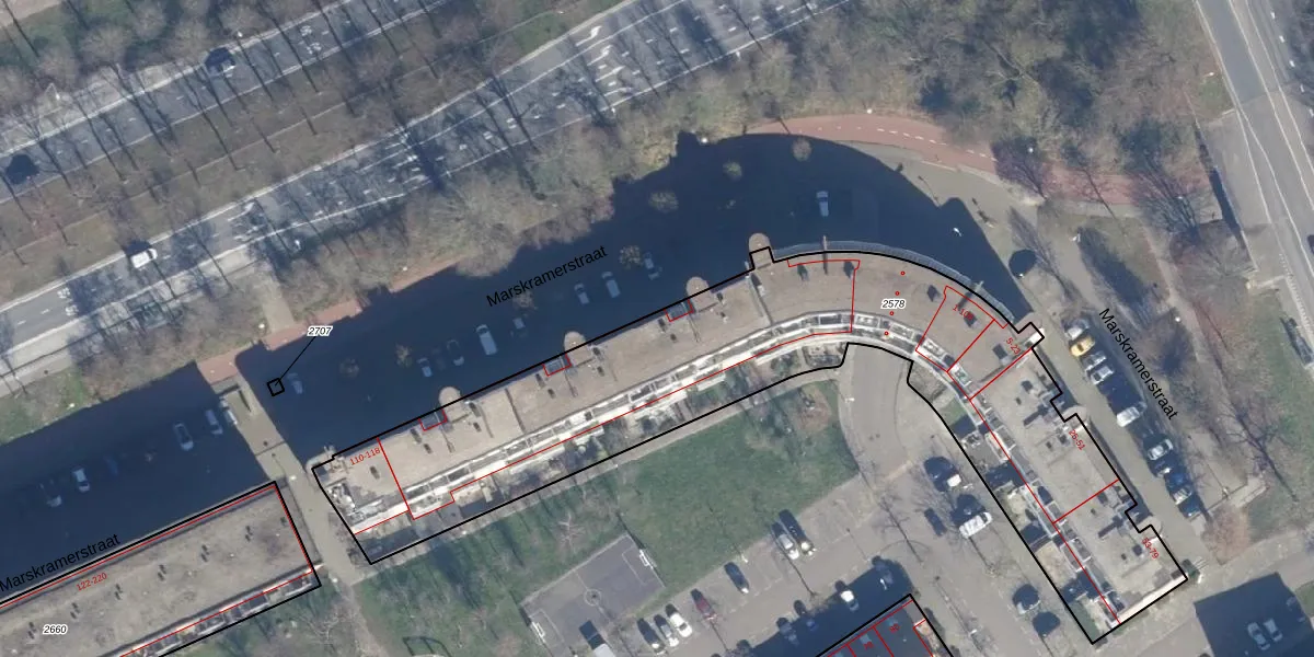 Het perceel waarop het adres ligt is ASD34-AO-2578. De afkorting 'ASD34' staat voor kadastrale gemeente Amsterdam. De oppervlakte van het perceel is 2560 m². Dat is groter dan gemiddeld in Amsterdam, waar de gemiddelde perceeloppervlakte op 1153,75 m² ligt. Het grootste perceel in de kadastrale gemeente is 25,8 ha. Het kleinste perceel heeft een oppervlakte van 0 m². Er zijn 99 adressen aanwezig op het perceel. De huidige grenzen van het perceel zijn digitaal in de Basisregistratie Kadaster (BRK) geregistreerd op 24-09-2010.