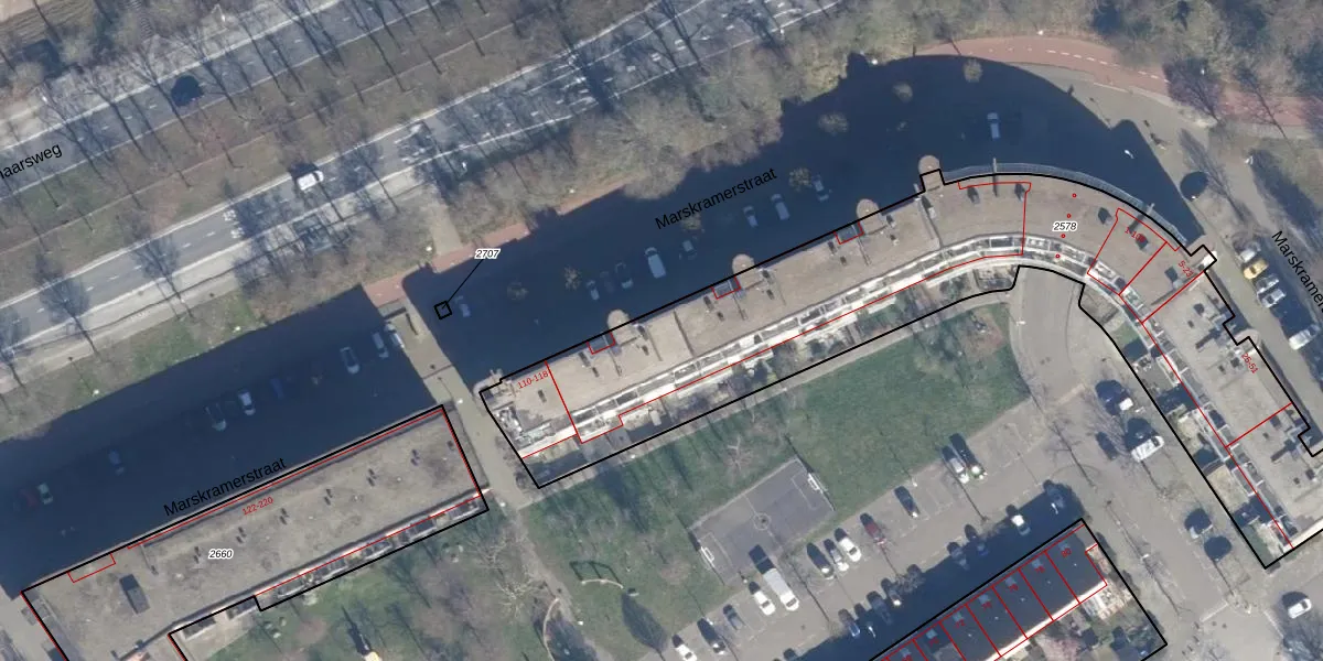Het perceel waarop Marskramerstraat 82 staat heeft een oppervlakte van 2560 m². Dit is een zeer groot perceel. De perceeloppervlakte wordt geregistreerd door het Kadaster. Gedetailleerde informatie over de maten van dit perceel kunt u vinden in het rapport Kadastrale kaart met maatvoering van Marskramerstraat 82.