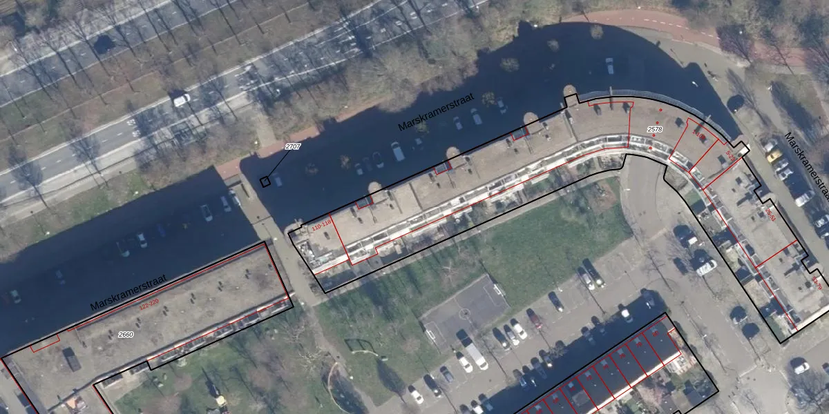 Het perceel waarop Marskramerstraat 92 staat heeft een oppervlakte van 2560 m². Dit is een zeer groot perceel. De perceeloppervlakte wordt geregistreerd door het Kadaster. Gedetailleerde informatie over de maten van dit perceel kunt u vinden in het rapport Kadastrale kaart met maatvoering van Marskramerstraat 92.
