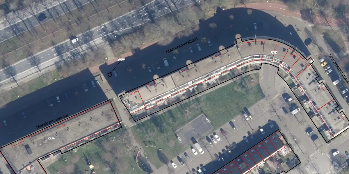 Het perceel waarop Marskramerstraat 98 staat heeft een oppervlakte van 2560 m². Dit is een zeer groot perceel. De perceeloppervlakte wordt geregistreerd door het Kadaster. Gedetailleerde informatie over de maten van dit perceel kunt u vinden in het rapport Kadastrale kaart met maatvoering van Marskramerstraat 98.