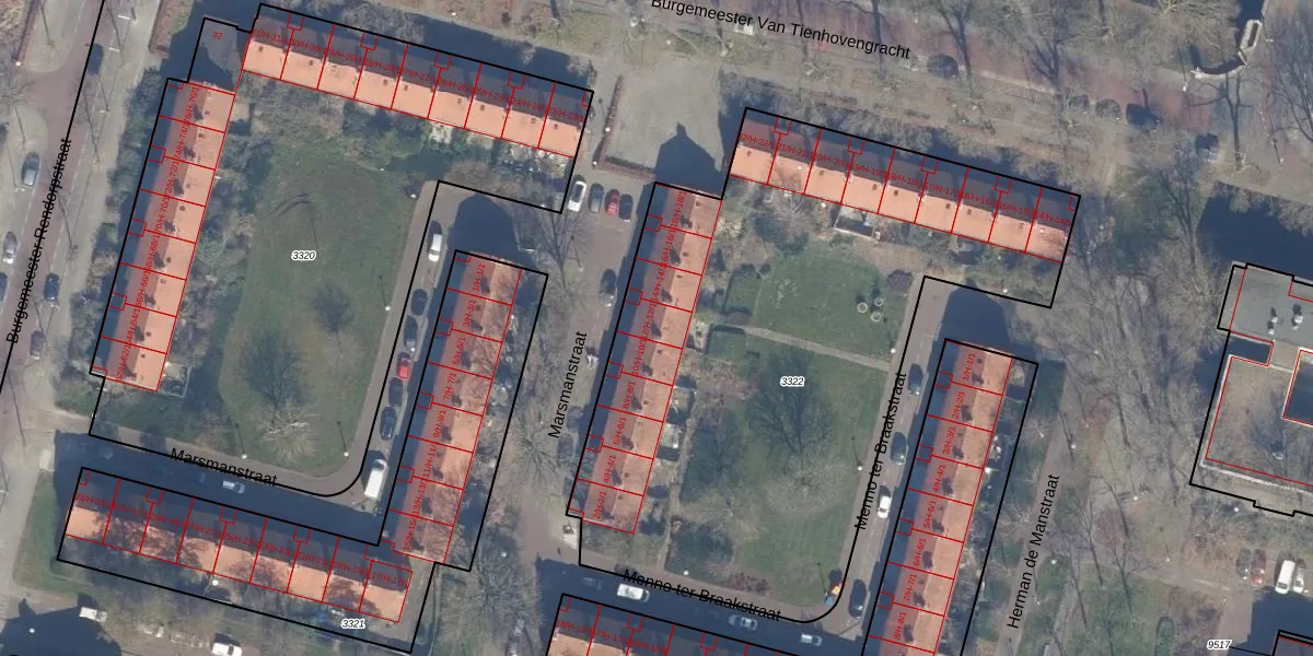 Het perceel waarop Marsmanstraat 12-1 staat heeft een oppervlakte van 3391 m². Dit is een zeer groot perceel. De perceeloppervlakte wordt geregistreerd door het Kadaster. Gedetailleerde informatie over de maten van dit perceel kunt u vinden in het rapport Kadastrale kaart met maatvoering van Marsmanstraat 12-1.