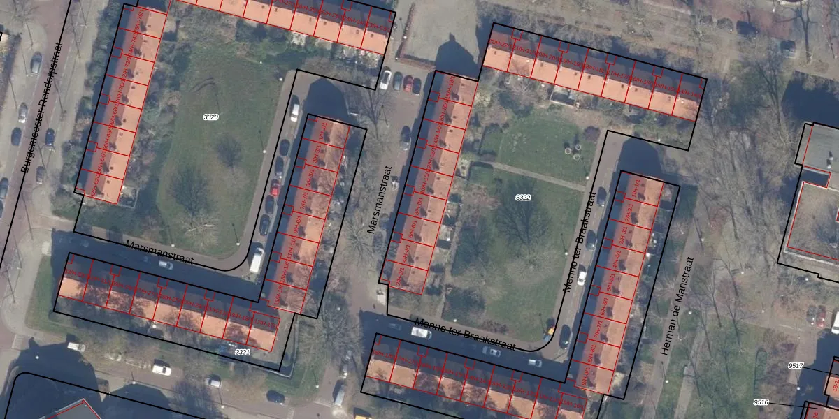 Het perceel waarop Marsmanstraat 8-H staat heeft een oppervlakte van 3391 m². Dit is een zeer groot perceel. De perceeloppervlakte wordt geregistreerd door het Kadaster. Gedetailleerde informatie over de maten van dit perceel kunt u vinden in het rapport Kadastrale kaart met maatvoering van Marsmanstraat 8-H.