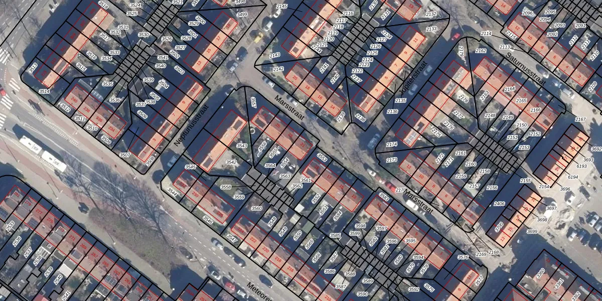 Gebruik de zoekbalk of klik op een perceel voor informatie over de adressen binnen dit perceel.