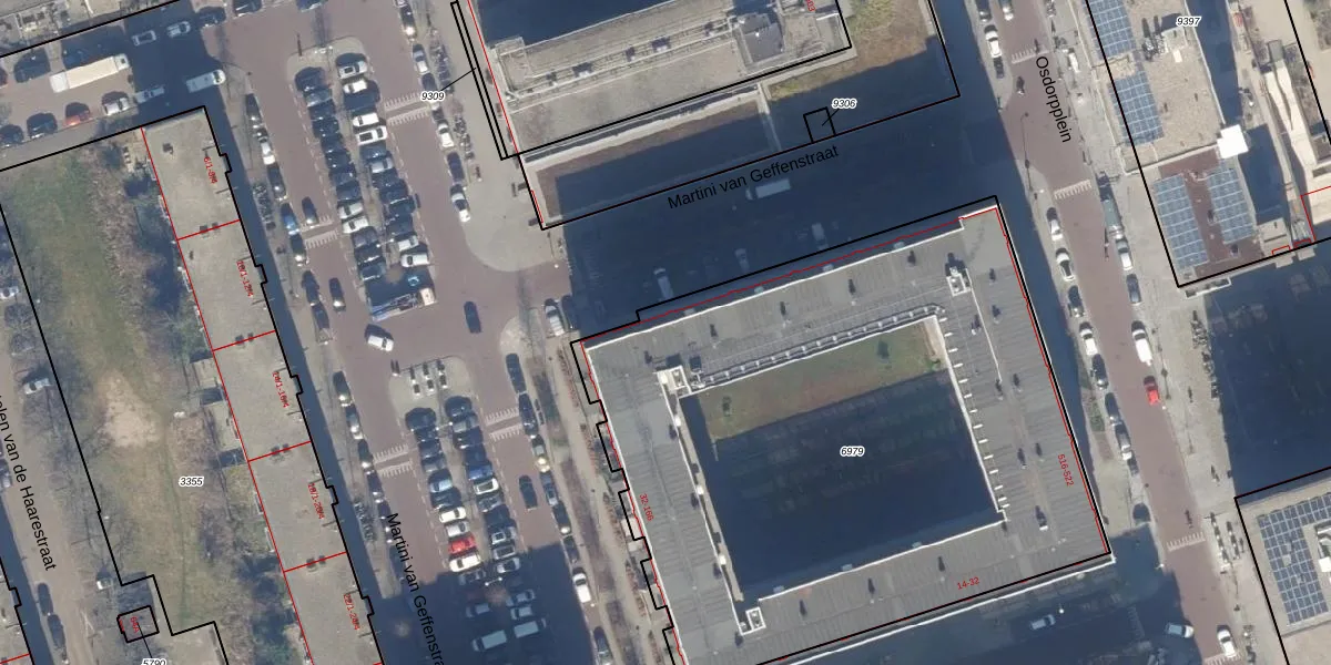 Het perceel waarop Martini van Geffenstraat 70 staat heeft een oppervlakte van 3775 m². Dit is een zeer groot perceel. De perceeloppervlakte wordt geregistreerd door het Kadaster. Gedetailleerde informatie over de maten van dit perceel kunt u vinden in het rapport Kadastrale kaart met maatvoering van Martini van Geffenstraat 70.