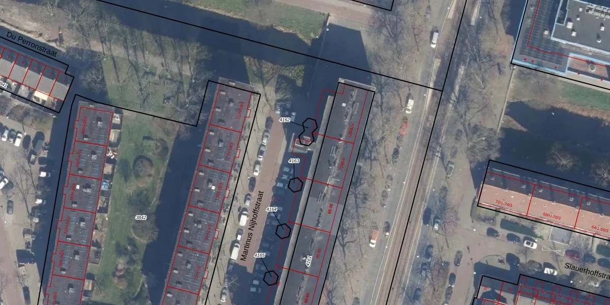 Het perceel waarop Martinus Nijhoffstraat 84 staat heeft een oppervlakte van 14,4 ha. Dit is een zeer groot perceel. De perceeloppervlakte wordt geregistreerd door het Kadaster. Gedetailleerde informatie over de maten van dit perceel kunt u vinden in het rapport Kadastrale kaart met maatvoering van Martinus Nijhoffstraat 84.