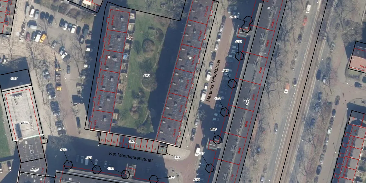 Het perceel waarop Martinus Nijhoffstraat 9-H staat heeft een oppervlakte van 4084 m². Dit is een zeer groot perceel. De perceeloppervlakte wordt geregistreerd door het Kadaster. Gedetailleerde informatie over de maten van dit perceel kunt u vinden in het rapport Kadastrale kaart met maatvoering van Martinus Nijhoffstraat 9-H.