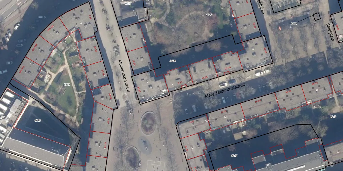 Mary Zeldenruststraat 1 is gelegen op kadastraal perceel ASD15S8639. Deze kadastrale aanduiding is uniek en wordt gebruikt door het Kadaster om eigendomsrechten en andere zakelijke rechten vast te leggen. Het perceel maakt onderdeel uit van de kadastrale gemeente Amsterdam.