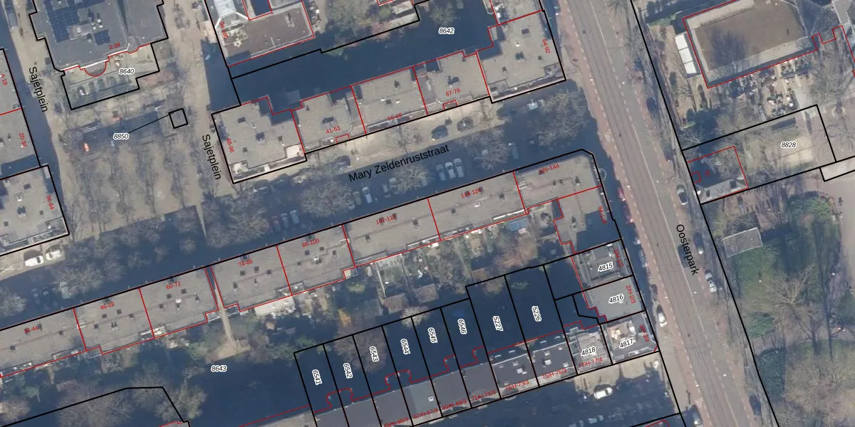 Mary Zeldenruststraat 112 is gelegen op kadastraal perceel ASD15S8643. Deze kadastrale aanduiding is uniek en wordt gebruikt door het Kadaster om eigendomsrechten en andere zakelijke rechten vast te leggen. Het perceel maakt onderdeel uit van de kadastrale gemeente Amsterdam.