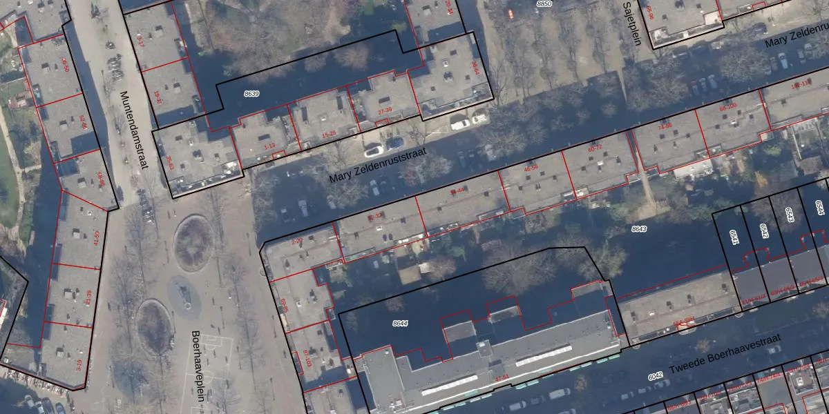 Mary Zeldenruststraat 32 is gelegen op kadastraal perceel ASD15S8643. Deze kadastrale aanduiding is uniek en wordt gebruikt door het Kadaster om eigendomsrechten en andere zakelijke rechten vast te leggen. Het perceel maakt onderdeel uit van de kadastrale gemeente Amsterdam.