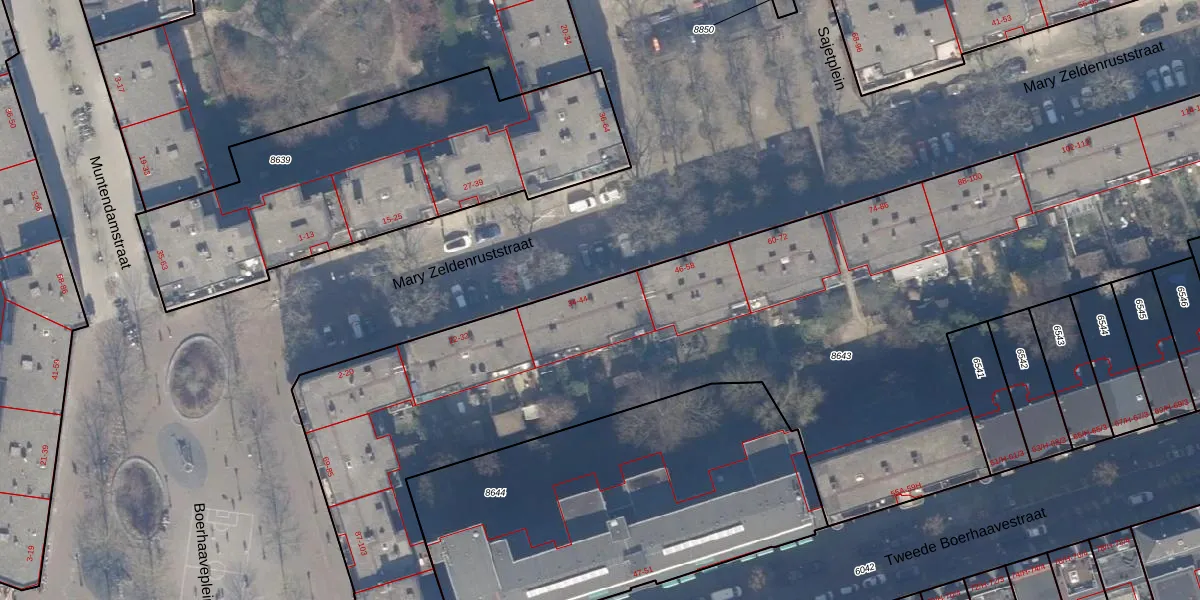 Mary Zeldenruststraat 40 is gelegen op kadastraal perceel ASD15S8643. Deze kadastrale aanduiding is uniek en wordt gebruikt door het Kadaster om eigendomsrechten en andere zakelijke rechten vast te leggen. Het perceel maakt onderdeel uit van de kadastrale gemeente Amsterdam.