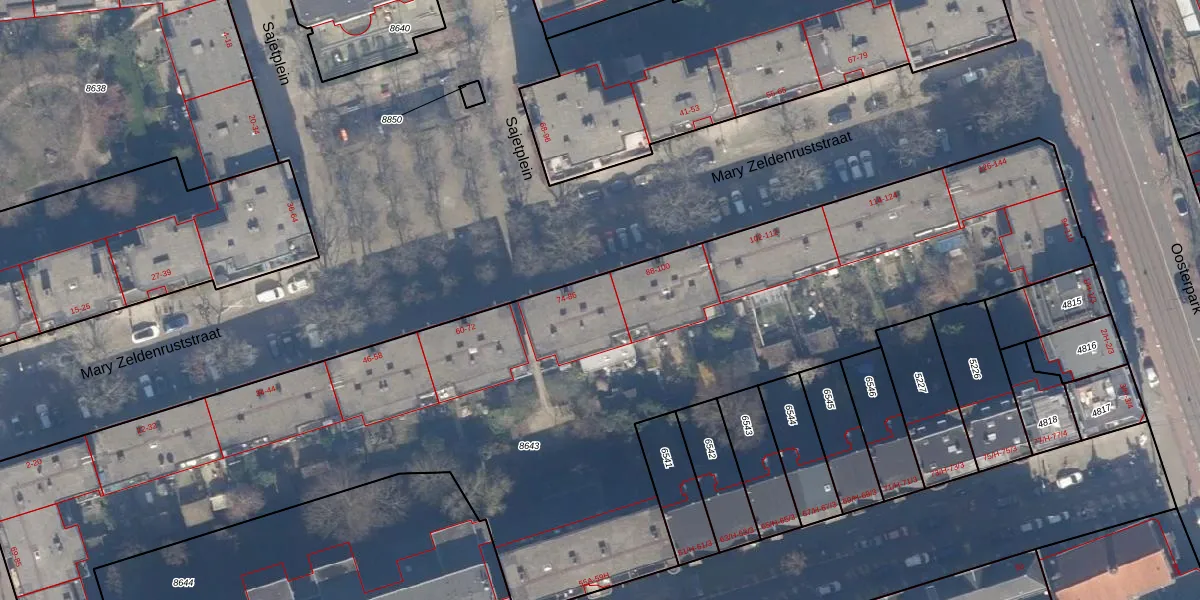 Mary Zeldenruststraat 86 is gelegen op kadastraal perceel ASD15S8643. Deze kadastrale aanduiding is uniek en wordt gebruikt door het Kadaster om eigendomsrechten en andere zakelijke rechten vast te leggen. Het perceel maakt onderdeel uit van de kadastrale gemeente Amsterdam.