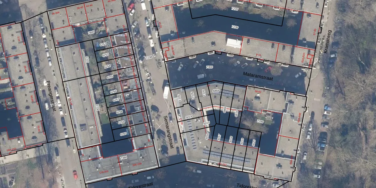 Het perceel waarop Mataramstraat 2 staat heeft een oppervlakte van 79 m². Dit is een klein perceel. De perceeloppervlakte wordt geregistreerd door het Kadaster. Gedetailleerde informatie over de maten van dit perceel kunt u vinden in het rapport Kadastrale kaart met maatvoering van Mataramstraat 2.