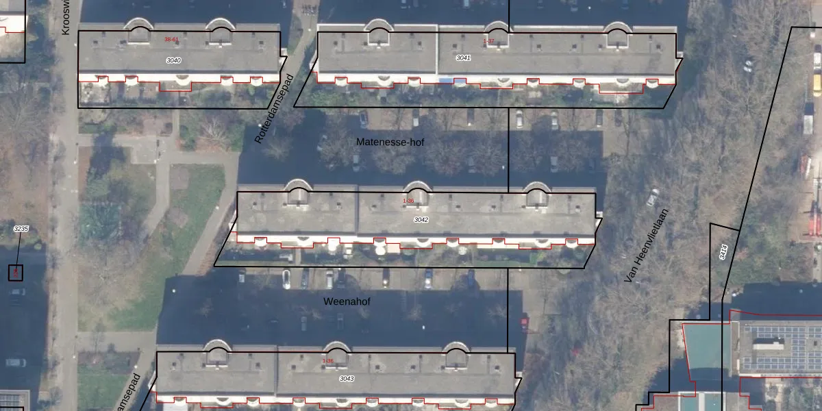 Matenesse-hof 14 is gelegen op kadastraal perceel ASD30AK3042. Deze kadastrale aanduiding is uniek en wordt gebruikt door het Kadaster om eigendomsrechten en andere zakelijke rechten vast te leggen. Het perceel maakt onderdeel uit van de kadastrale gemeente Amsterdam.