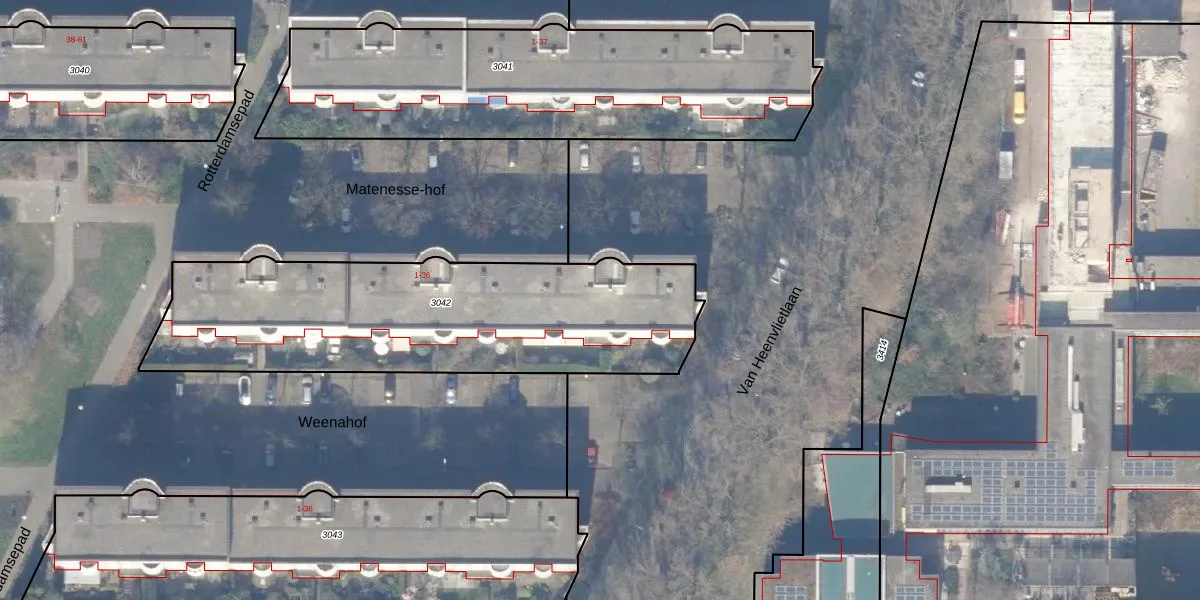 Matenesse-hof 8 is gelegen op kadastraal perceel ASD30AK3042. Deze kadastrale aanduiding is uniek en wordt gebruikt door het Kadaster om eigendomsrechten en andere zakelijke rechten vast te leggen. Het perceel maakt onderdeel uit van de kadastrale gemeente Amsterdam.