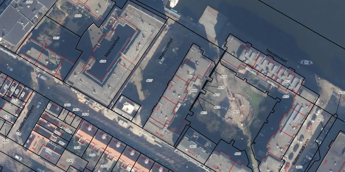 Matrozenhof 40 is gelegen op kadastraal perceel ASD11O4668. Deze kadastrale aanduiding is uniek en wordt gebruikt door het Kadaster om eigendomsrechten en andere zakelijke rechten vast te leggen. Het perceel maakt onderdeel uit van de kadastrale gemeente Amsterdam.