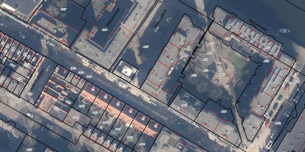Matrozenhof 6 is gelegen op kadastraal perceel ASD11O4668. Deze kadastrale aanduiding is uniek en wordt gebruikt door het Kadaster om eigendomsrechten en andere zakelijke rechten vast te leggen. Het perceel maakt onderdeel uit van de kadastrale gemeente Amsterdam.