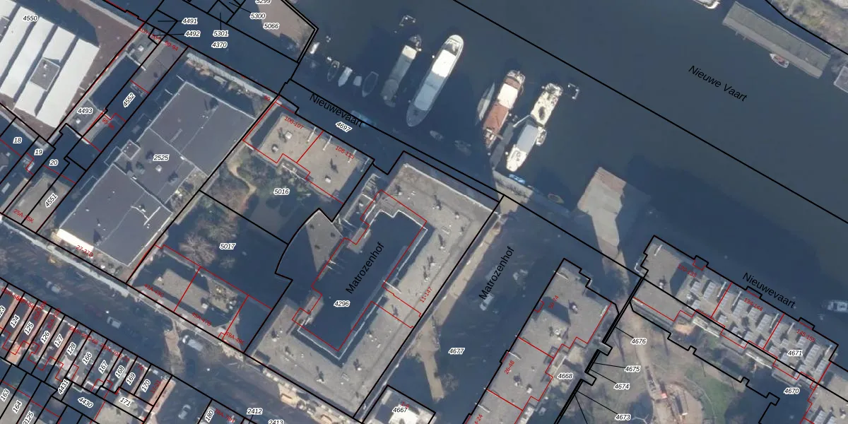 Het adres ligt op het perceel ASD11-O-4296, dat zich in de kadastrale gemeente Amsterdam bevindt. De oppervlakte van het perceel is 1880 m². Dat is groter dan gemiddeld in Amsterdam, waar de gemiddelde perceeloppervlakte op 781,11 m² ligt. Het kleinste perceel in de kadastrale gemeente is 1 m² groot. De grootste perceeloppervlakte is 12,0 ha. Op het perceel liggen in totaal 72 adressen. In de Basisregistratie Kadaster (BRK) werden de grenzen van het perceel geregistreerd op 22-10-2009.