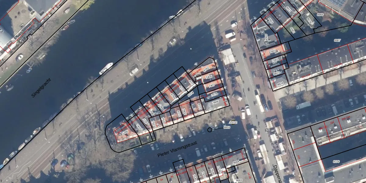 Het perceel waarop het adres ligt is ASD15-S-9770. De afkorting 'ASD15' staat voor kadastrale gemeente Amsterdam. Het perceel is kleiner dan gemiddeld in Amsterdam. Het perceel is 80 m² groot, terwijl het gemiddelde ligt op 537,06 m². De grootste perceeloppervlakte in de kadastrale gemeente is 14,5 ha. De kleinste oppervlakte bedraagt 0 m². Op het perceel zijn 4 adressen aanwezig. De huidige grenzen van het perceel zijn digitaal in de Basisregistratie Kadaster (BRK) geregistreerd op 18-08-2009.
