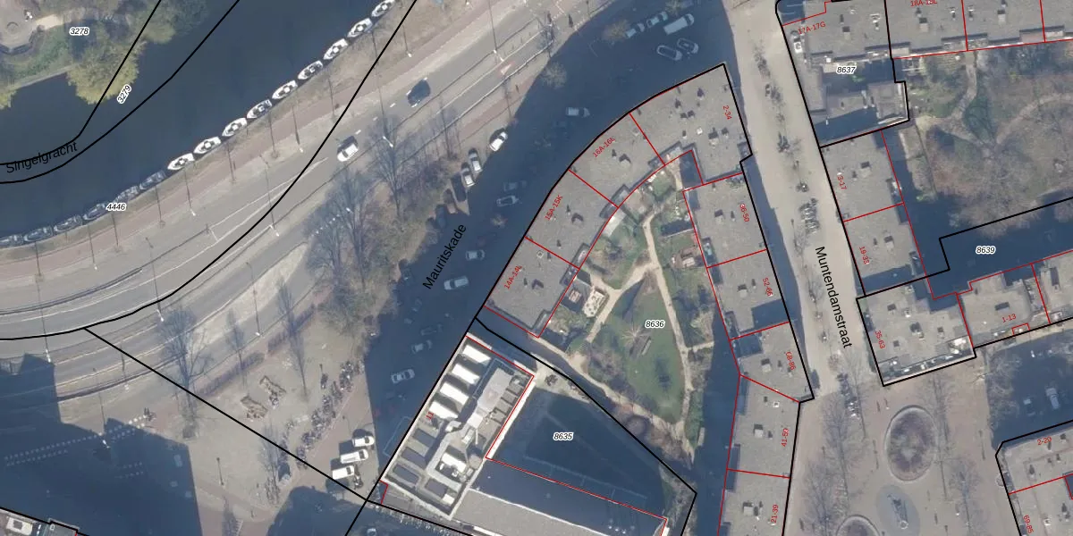Mauritskade 14-H is gelegen op kadastraal perceel ASD15S8636. Deze kadastrale aanduiding is uniek en wordt gebruikt door het Kadaster om eigendomsrechten en andere zakelijke rechten vast te leggen. Het perceel maakt onderdeel uit van de kadastrale gemeente Amsterdam.