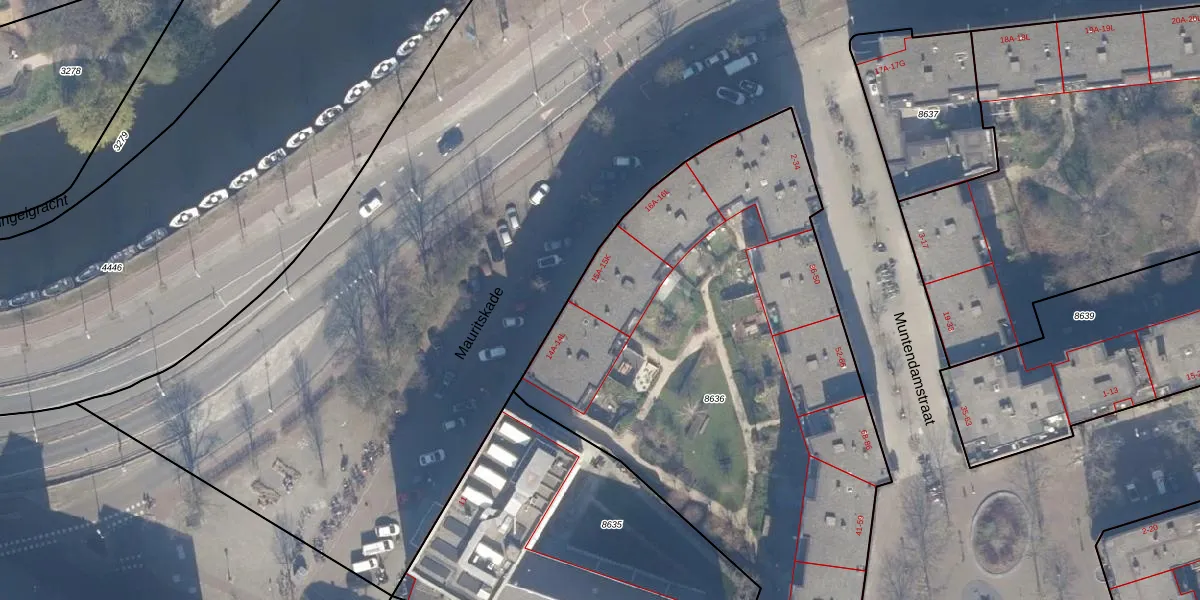 Mauritskade 15-C is gelegen op kadastraal perceel ASD15S8636. Deze kadastrale aanduiding is uniek en wordt gebruikt door het Kadaster om eigendomsrechten en andere zakelijke rechten vast te leggen. Het perceel maakt onderdeel uit van de kadastrale gemeente Amsterdam.