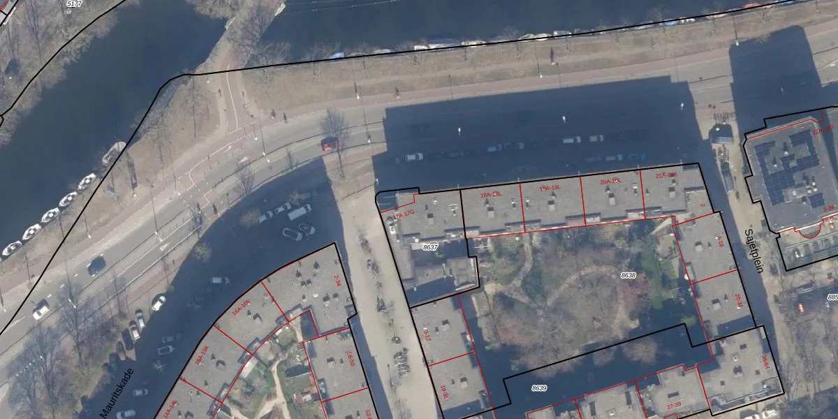 Mauritskade 17-B is gelegen op kadastraal perceel ASD15S8637. Deze kadastrale aanduiding is uniek en wordt gebruikt door het Kadaster om eigendomsrechten en andere zakelijke rechten vast te leggen. Het perceel maakt onderdeel uit van de kadastrale gemeente Amsterdam.