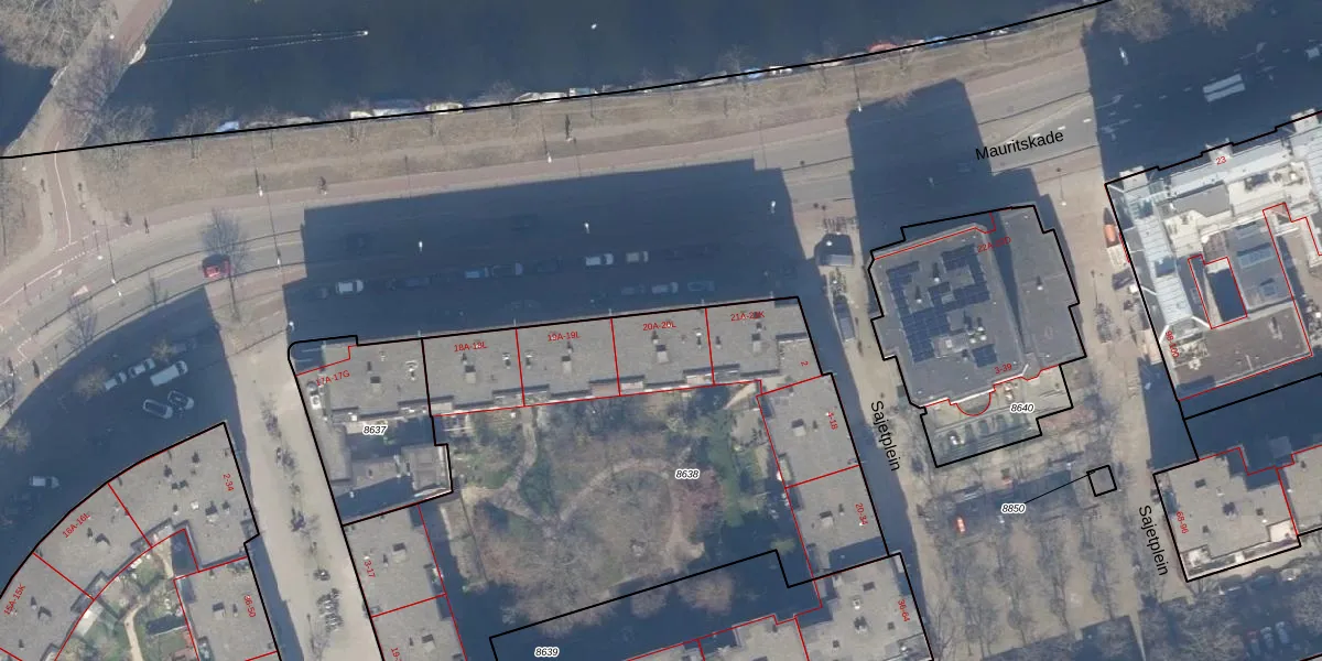 Het perceel waarop Mauritskade 20-F staat heeft een oppervlakte van 3006 m². Dit is een zeer groot perceel. De perceeloppervlakte wordt geregistreerd door het Kadaster. Gedetailleerde informatie over de maten van dit perceel kunt u vinden in het rapport Kadastrale kaart met maatvoering van Mauritskade 20-F.