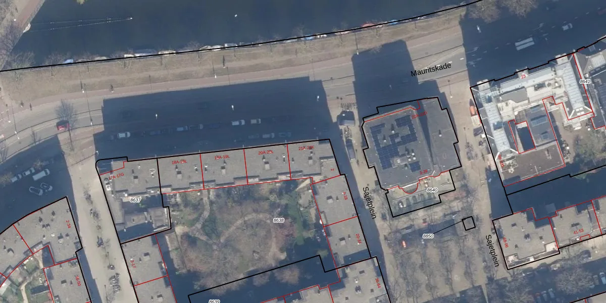 Mauritskade 21-F is gelegen op kadastraal perceel ASD15S8638. Deze kadastrale aanduiding is uniek en wordt gebruikt door het Kadaster om eigendomsrechten en andere zakelijke rechten vast te leggen. Het perceel maakt onderdeel uit van de kadastrale gemeente Amsterdam.