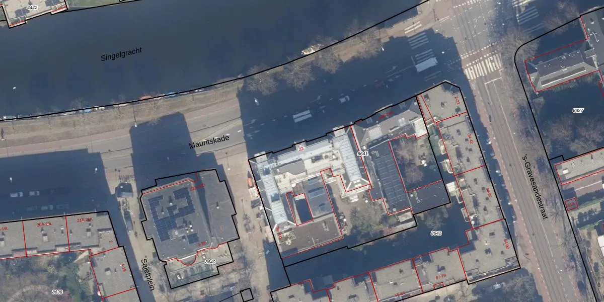Mauritskade 23 is gelegen op kadastraal perceel ASD15S8641. Deze kadastrale aanduiding is uniek en wordt gebruikt door het Kadaster om eigendomsrechten en andere zakelijke rechten vast te leggen. Het perceel maakt onderdeel uit van de kadastrale gemeente Amsterdam.