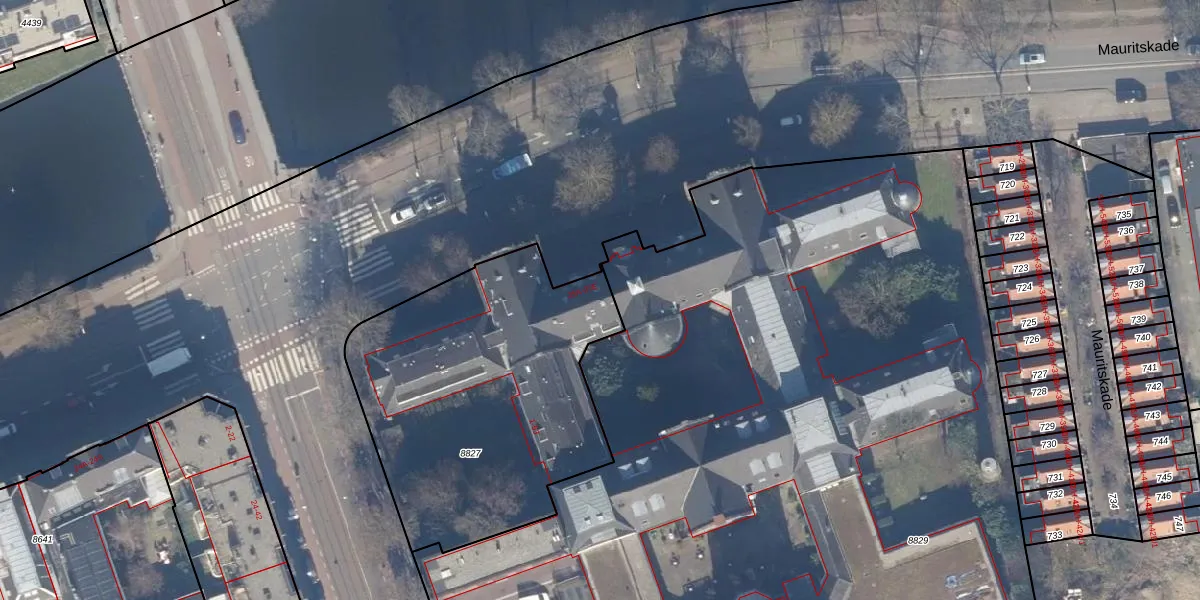 Het perceel waarop Mauritskade 26-D staat heeft een oppervlakte van 1580 m². Dit is een zeer groot perceel. De perceeloppervlakte wordt geregistreerd door het Kadaster. Gedetailleerde informatie over de maten van dit perceel kunt u vinden in het rapport Kadastrale kaart met maatvoering van Mauritskade 26-D.