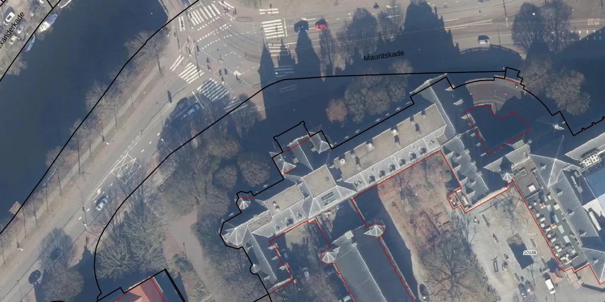 Het perceel waarop Mauritskade 63 staat heeft een oppervlakte van 1,6 ha. Dit is een zeer groot perceel. De perceeloppervlakte wordt geregistreerd door het Kadaster. Gedetailleerde informatie over de maten van dit perceel kunt u vinden in het rapport Kadastrale kaart met maatvoering van Mauritskade 63.