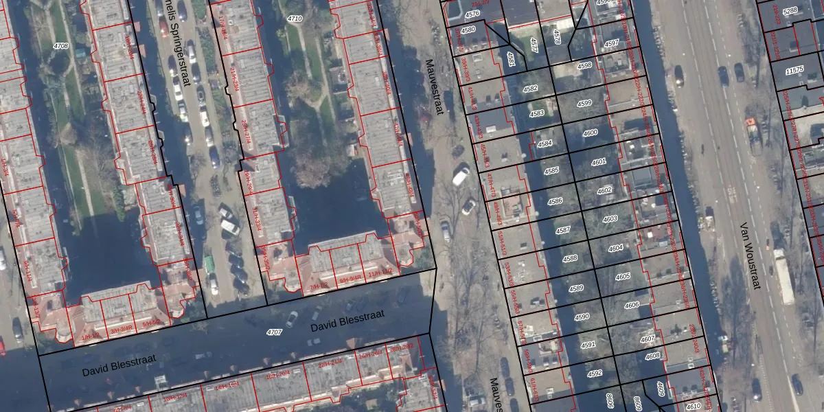 Het adres is gelegen op perceel 4710 in de sectie V en de kadastrale gemeente Amsterdam. De kadastrale aanduiding is aldus ASD18-V-4710. De oppervlakte van het perceel is 5550 m². Dat is groter dan gemiddeld in Amsterdam, waar de gemiddelde perceeloppervlakte op 558,8 m² ligt. Het grootste perceel in de kadastrale gemeente is 12,5 ha. Het kleinste perceel heeft een oppervlakte van 0 m². Op het perceel zijn 162 adressen aanwezig. De huidige grenzen van het perceel zijn digitaal in de Basisregistratie Kadaster (BRK) geregistreerd op 09-08-2006.