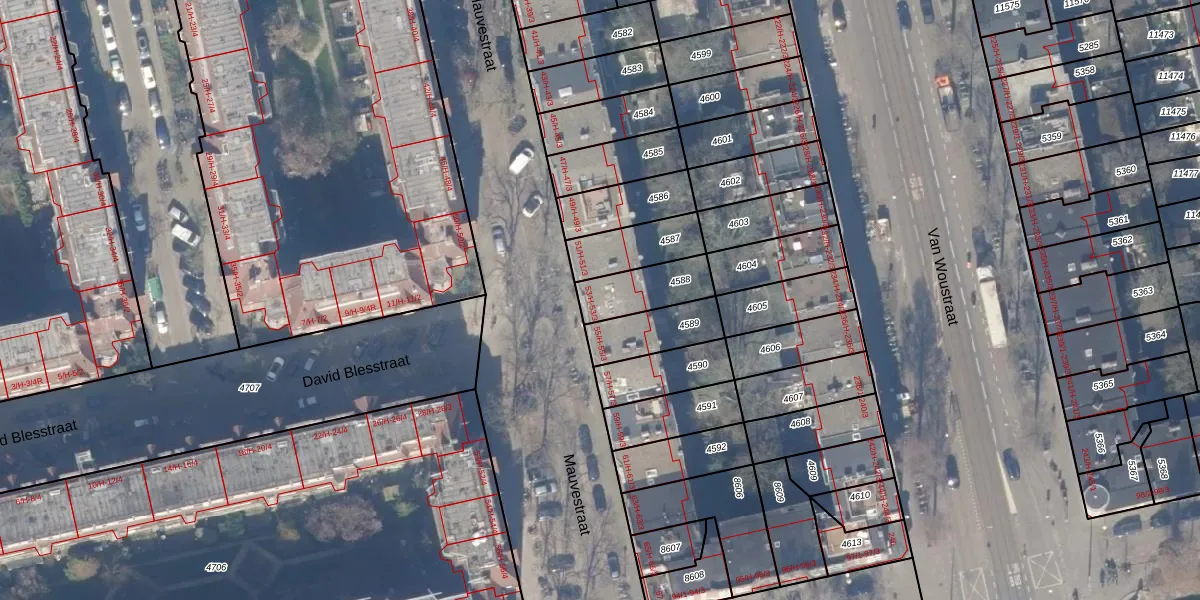 Mauvestraat 53-3 is gelegen op kadastraal perceel ASD18V4588. Deze kadastrale aanduiding is uniek en wordt gebruikt door het Kadaster om eigendomsrechten en andere zakelijke rechten vast te leggen. Het perceel maakt onderdeel uit van de kadastrale gemeente Amsterdam.