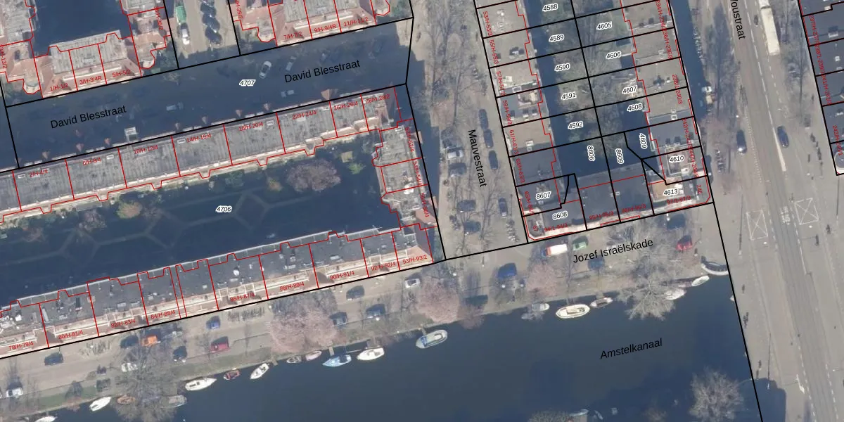 Het adres is gelegen op perceel 4706 in de sectie V en de kadastrale gemeente Amsterdam. De kadastrale aanduiding is aldus ASD18-V-4706. De oppervlakte van het perceel is 5455 m². Dat is groter dan gemiddeld in Amsterdam, waar de gemiddelde perceeloppervlakte op 558,8 m² ligt. Het grootste perceel in de kadastrale gemeente is 12,5 ha. Het kleinste perceel heeft een oppervlakte van 0 m². Op het perceel zijn 164 adressen aanwezig. In de Basisregistratie Kadaster (BRK) werden de grenzen van het perceel geregistreerd op 09-08-2006.