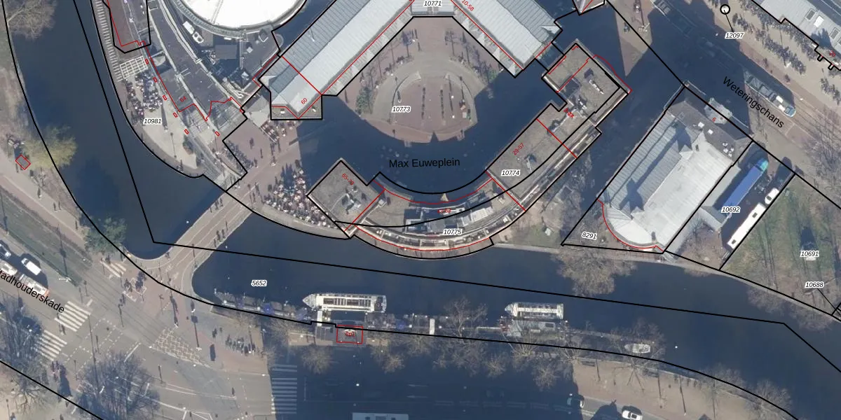 Max Euweplein 43 is gelegen op kadastraal perceel ASD06I10774. Deze kadastrale aanduiding is uniek en wordt gebruikt door het Kadaster om eigendomsrechten en andere zakelijke rechten vast te leggen. Het perceel maakt onderdeel uit van de kadastrale gemeente Amsterdam.