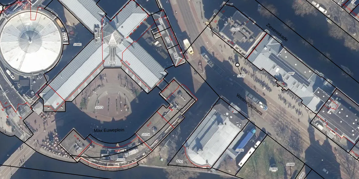 Max Euweplein 9 is gelegen op kadastraal perceel ASD06I10774. Deze kadastrale aanduiding is uniek en wordt gebruikt door het Kadaster om eigendomsrechten en andere zakelijke rechten vast te leggen. Het perceel maakt onderdeel uit van de kadastrale gemeente Amsterdam.