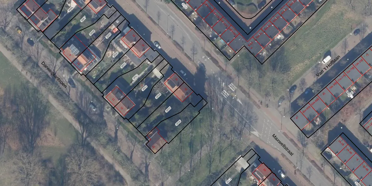 Het perceel waarop Maxwellstraat 22 staat heeft een oppervlakte van 319 m². Dit is een groot perceel. De perceeloppervlakte wordt geregistreerd door het Kadaster. Gedetailleerde informatie over de maten van dit perceel kunt u vinden in het rapport Kadastrale kaart met maatvoering van Maxwellstraat 22.
