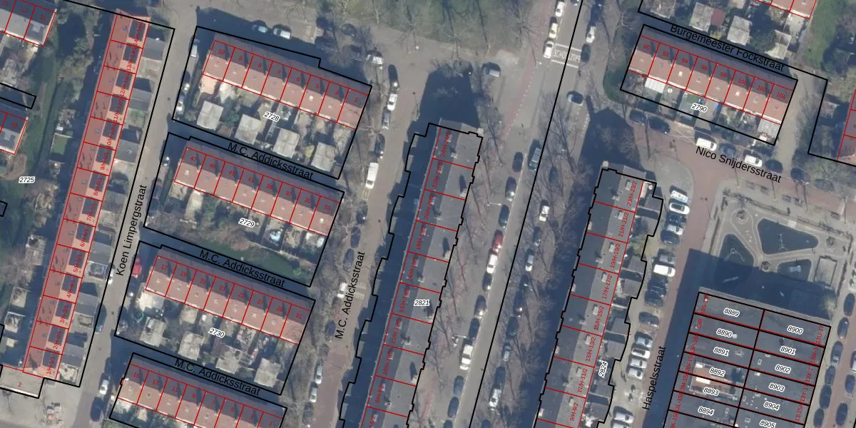 M.C. Addicksstraat 20-1 is gelegen op kadastraal perceel STN02D2821. Deze kadastrale aanduiding is uniek en wordt gebruikt door het Kadaster om eigendomsrechten en andere zakelijke rechten vast te leggen. Het perceel maakt onderdeel uit van de kadastrale gemeente Sloten Noord-Holland.