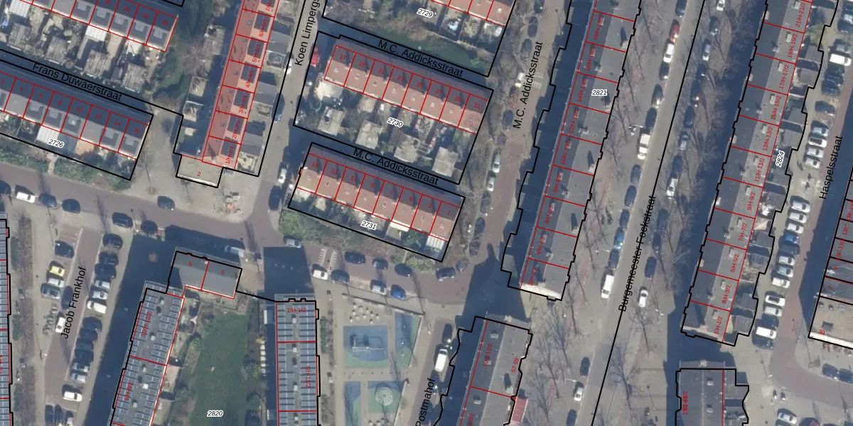 M.C. Addicksstraat 3 is gelegen op kadastraal perceel STN02D2731. Deze kadastrale aanduiding is uniek en wordt gebruikt door het Kadaster om eigendomsrechten en andere zakelijke rechten vast te leggen. Het perceel maakt onderdeel uit van de kadastrale gemeente Sloten Noord-Holland.