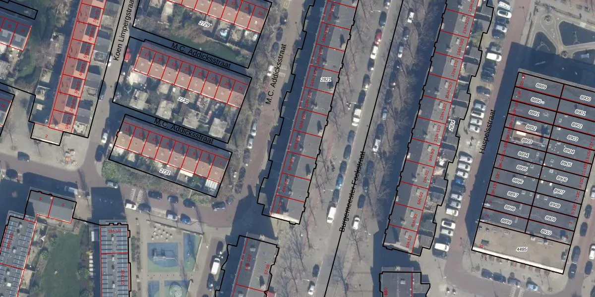 Het perceel waarop M.C. Addicksstraat 8-2 staat heeft een oppervlakte van 1367 m². Dit is een zeer groot perceel. De perceeloppervlakte wordt geregistreerd door het Kadaster. Gedetailleerde informatie over de maten van dit perceel kunt u vinden in het rapport Kadastrale kaart met maatvoering van M.C. Addicksstraat 8-2.