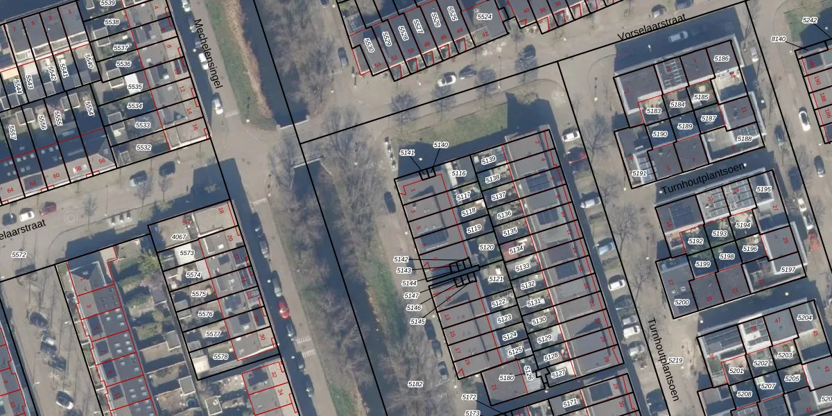 Gebruik de zoekbalk of klik op een perceel voor informatie over de adressen binnen dit perceel.